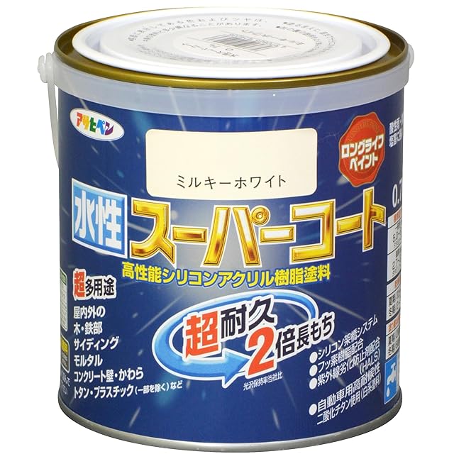 アサヒペン 水性スーパーコート 0.7L ミルキーホワイト 塗料 ペンキ シリコンアクリル塗料 ツヤあり 1回塗り 超耐久 多用途 さび止め剤配合 防カビ剤配合 紫外線劣化防止剤配合 シックハウス対策品 日本製