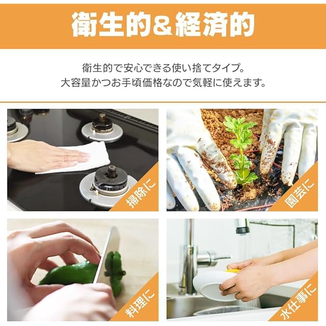 優れたフィット性で様々なシーンで活躍‼ 「食品衛生法適合」で調理にもご使用いただけます。他にも掃除、園芸、水仕事などにも◎