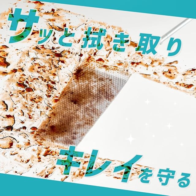 油を効率的に吸収する特性を持つポリプロピレンの繊維。耐久性に優れ汚れをスッキリ拭き取る。