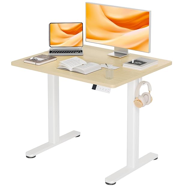 Claiks 昇降デスク 電動 スタンディングデスク 昇降式 テーブル 幅88cm*奥行き50cm テレワーク オフィスデスク 在宅ワーク パソコンデスク 高さ調節 メモリー機能 ホワイトフレーム/ナチュラル天板