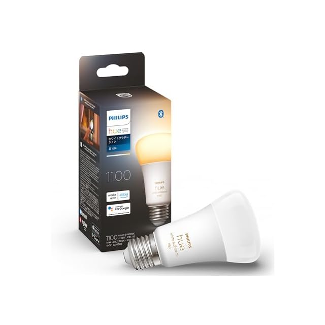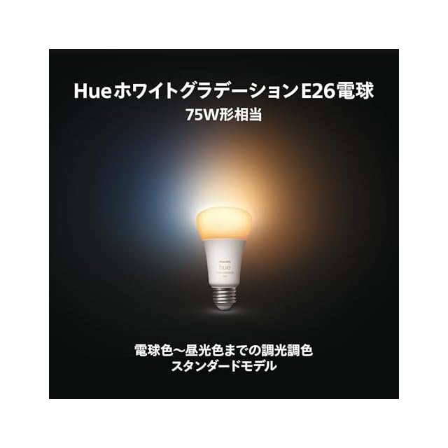 フィリップスヒュー(Philips Hue) スマート電球 E26 75W相当 ホワイトグラデーション 1個 - スマート照明 フィリップスヒュー Alexa対応 1100lm 電球色 昼白色 調光 調色 スマートホーム 間接照明 LED スマートライト 音声操作 アプリ操作 Matter対応