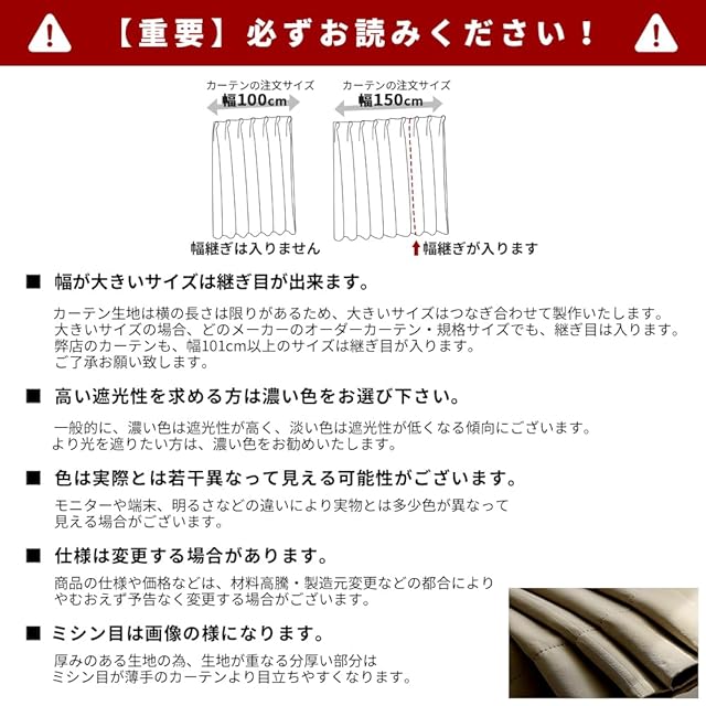 【1級遮光】迷ったらこれ!シンプル&機能性重視の方におすすめです。この2枚セット(1級遮光ドレープカーテン2枚)を選択する理由:①光沢を抑えたマットな質感が美しい。②黒ずみの少ないなめらかな生地。③快適に過ごせる優れた性能。遮光率99.9%以上、日差しの強い窓でもしっかりと遮光できるので、光をできる限りシャットアウトしたい方におすすめです。