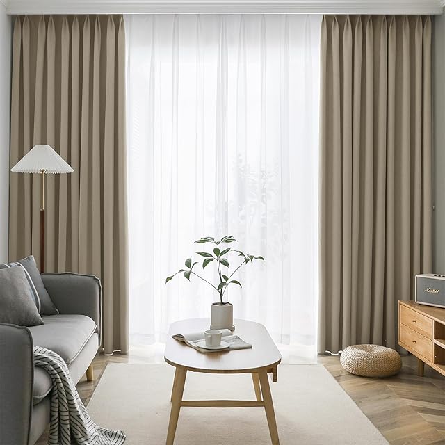 商品名:AIFY カーテン 4枚セット 1級 遮光 小窓 ドレープカーテン UVカット 形態記憶加工済み 断熱 節電対策 昼夜目隠し 保温 おしゃれ 洗える 洗濯機対応 (カーテン2枚 レース2枚) 幅100cm x 丈210 cm キャメル