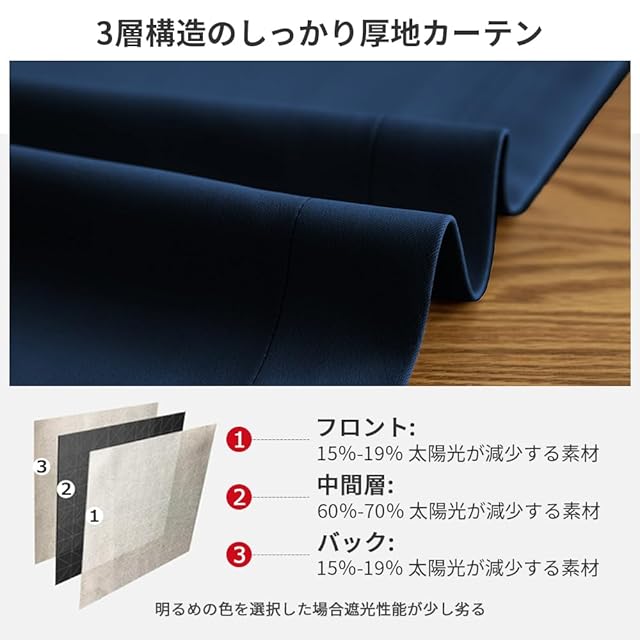 【プライバシーを守る】室内の光を外に漏れにくくする効果があるだけではなく、夜に部屋の明かりを付けている時でも外から人影が見えづらく、プライバシーを守ることができます。女性の一人暮らしでもこのカーテンなら安 心できる