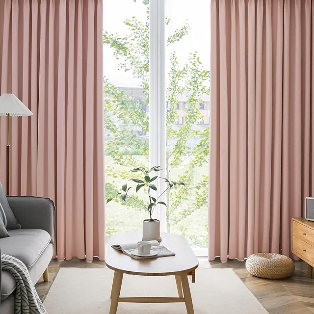 AIFY カーテン 2枚セット 1級 遮光 小窓 ドレープカーテン UVカット 形態記憶加工済み 断熱 節電対策 昼夜目隠し 保温 おしゃれ 洗える 洗濯機対応 (カーテン2枚) 幅150cm×丈200cm ピンク