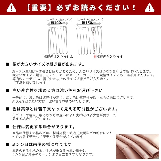 【1級遮光】迷ったらこれ!シンプル&機能性重視の方におすすめです。この2枚セット(1級遮光ドレープカーテン2枚)を選択する理由:①光沢を抑えたマットな質感が美しい。②黒ずみの少ないなめらかな生地。③快適に過ごせる優れた性能。遮光率99.9%以上、日差しの強い窓でもしっかりと遮光できるので、光をできる限りシャットアウトしたい方におすすめです。