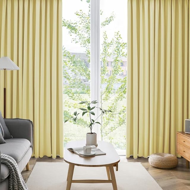 AIFY カーテン 2枚セット 99.9%以上遮光 小窓 ドレープカーテン UVカット 形態記憶加工済み 断熱 節電対策 昼夜目隠し 保温 おしゃれ 洗える 洗濯機対応 (カーテン2枚) 幅100cm×丈135cm ペールイエロー
