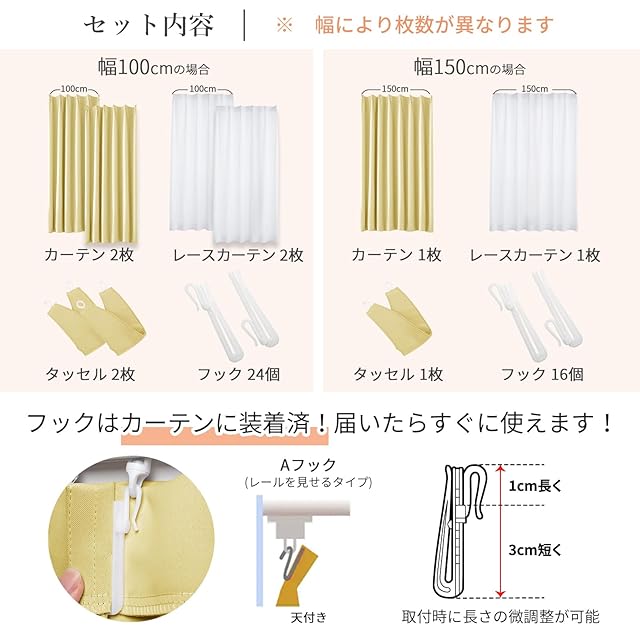 商品名:AIFY カーテン 4枚セット 1級 遮光 小窓 ドレープカーテン UVカット 形態記憶加工済み 断熱 節電対策 昼夜目隠し 保温 おしゃれ 洗える 洗濯機対応 (カーテン2枚 レース2枚) 幅100cm x 丈178 cm ペールイエロー