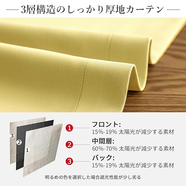 【プライバシーを守る】室内の光を外に漏れにくくする効果があるだけではなく、夜に部屋の明かりを付けている時でも外から人影が見えづらく、プライバシーを守ることができます。女性の一人暮らしでもこのカーテンなら安 心できる