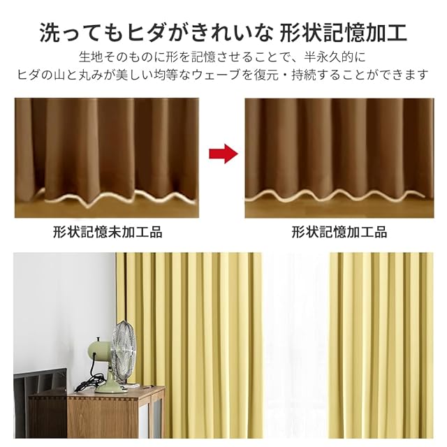 商品名:AIFY カーテン 2枚セット 1級 遮光 小窓 ドレープカーテン UVカット 形態記憶加工済み 断熱 節電対策 昼夜目隠し 保温 おしゃれ 洗える 洗濯機対応 (カーテン2枚) 幅150cm×丈230cm ペールイエロー