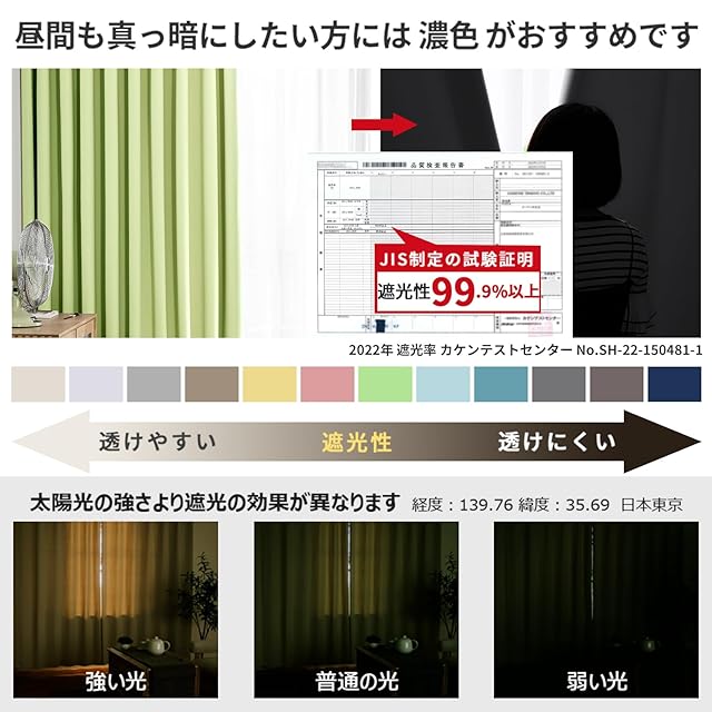 【プライバシーを守る】室内の光を外に漏れにくくする効果があるだけではなく、夜に部屋の明かりを付けている時でも外から人影が見えづらく、プライバシーを守ることができます。女性の一人暮らしでもこのカーテンなら安 心できる