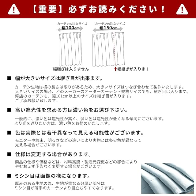 【1級遮光】迷ったらこれ!シンプル&機能性重視の方におすすめです。この2枚セット(1級遮光ドレープカーテン2枚)を選択する理由:①光沢を抑えたマットな質感が美しい。②黒ずみの少ないなめらかな生地。③快適に過ごせる優れた性能。遮光率99.9%以上、日差しの強い窓でもしっかりと遮光できるので、光をできる限りシャットアウトしたい方におすすめです。