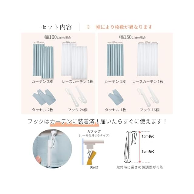 AIFY カーテン 4枚セット 1級 遮光 小窓 ドレープカーテン UVカット 形態記憶加工済み 断熱 節電対策 昼夜目隠し 保温 おしゃれ 洗える 洗濯機対応 (カーテン2枚 レース2枚) 幅100cm x 丈230 cm ライトブルー