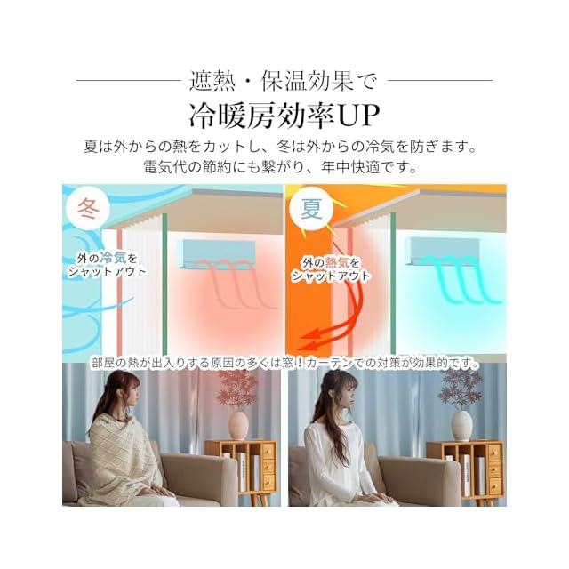 【プライバシーを守る】室内の光を外に漏れにくくする効果があるだけではなく、夜に部屋の明かりを付けている時でも外から人影が見えづらく、プライバシーを守ることができます。女性の一人暮らしでもこのカーテンなら安 心できる