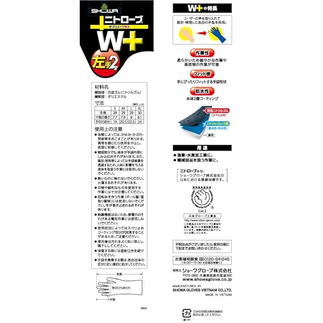 商品名:ショーワグローブ【片手・防水・耐油】No.378Plusニトローブ W+ 左手 ブルー XLサイズ 2本