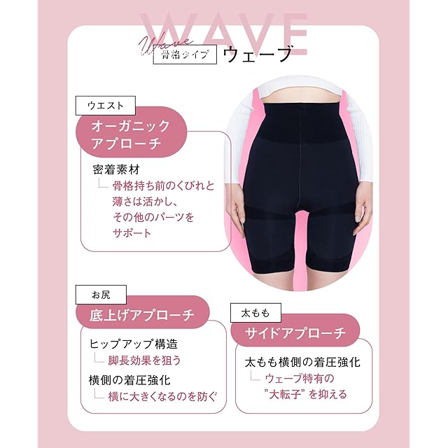 ✅【 骨格 タイプに合わせた 着圧ガードル 】 骨格ストレート / 骨格ウェーブ / 骨格ナチュラル の3タイプに対応。それぞれ太りやすい部位に合わせて 着圧 を最適配置した ベルミス の 着圧ガードル