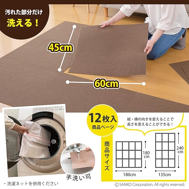 【特徴】 撥水加工、洗濯機OK(繰り返し使えます)、床暖房対応(推奨:低温)、ハサミでカット可能
