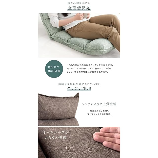 タンスのゲン 座椅子 スーパー ハイバック 低反発 42段階 リクライニング ロング ファブリック オパールグリーン 15210015(79469)