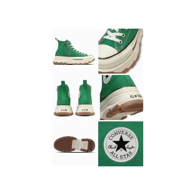 オールスターの定番スタイルに、トレッキングシューズを思わせるボリューム感あふれるアウトソールを融合させたデザインが目を引きます。