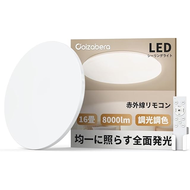 Coizabera LEDシーリングライト 16畳 60W 高輝度 8000lm 調光調色 豆電球常夜灯 led 照明 天井 おしゃれ 蛍光灯 リモコン付き 赤外線リモコン スマホ操作なし 天井対応 器具 和室/洋室/寝室/玄関/リビング/キッチン適用(白枠)