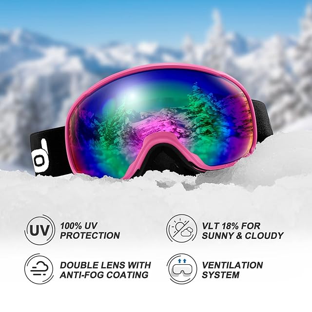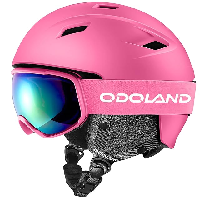 Odoland スキーヘルメットセット ゴーグル付き スノーボードヘルメット ダイヤル式サイズ調整 メガネ対応 ダブル球面レンズ 防風 曇り止め 耐衝撃 UVカット 男女兼用 大人・ジュニア・子供用 ピンク S