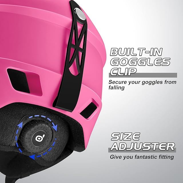 【サイズを調整可能、頭サイズにピッタリ】スキーヘルメットの後頭部にあるダイヤルを回すだけで、頭部のサイズを調整可能です。頭のサイズに合わせて締め具合を調節でき、ヘルメットを被る時のフィット感をサーポット。男女問わずに、あなたにより良いヘルメット装着体験を与えます。