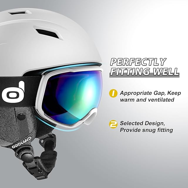 Odoland スキーヘルメットセット ゴーグル付き スノーボードヘルメット ダイヤル式サイズ調整 メガネ対応 ダブル球面レンズ 防風 曇り止め 耐衝撃 UVカット 男女兼用 大人・ジュニア・子供用 ホワイト M