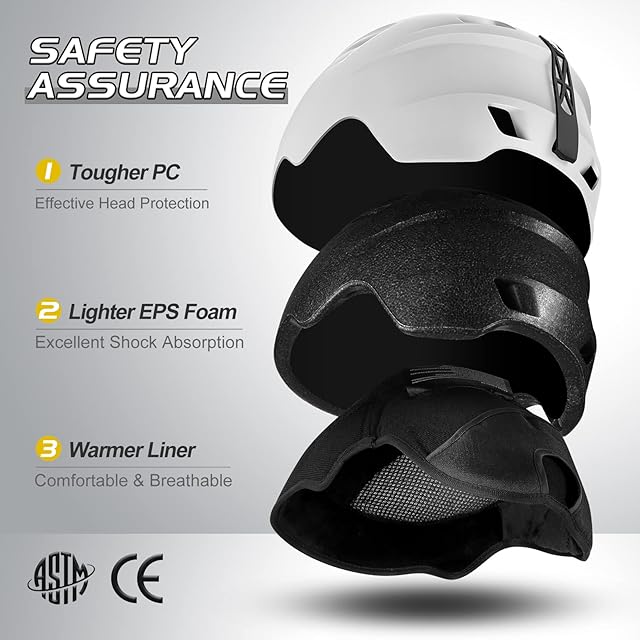 【柔軟性と快適性】ヘルメットには、取り外し可能な裏地、取り外し可能なイヤーマフ、暖かいあご用の柔らかい顎バンドが付いています。ゴーグルには調整が簡単なバンドも付いています。あなたは完璧なフィット感と超快適さのためにバンドを調整することができます。どちらも簡単に調整、着脱ができます。