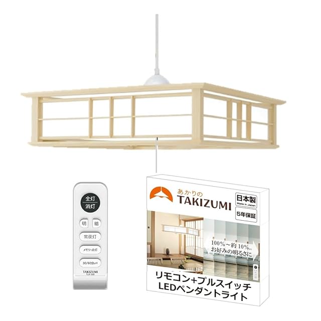 タキズミ (Takizumi) 【省エネ 節電 日本製 5年】 省エネ性業界トップクラス リモコン付LED 和風 ペンダントライト ~8畳用 木製枠 工事不要 簡単取付 RVR80158