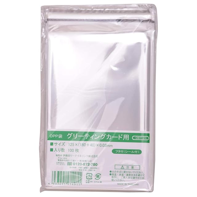 伊藤忠リーテイルリンク OPP袋 透明【グリーティングカード用】 フタ付 シール付 【100枚入】幅125×高さ180+フタ40×厚さ0.03mm
