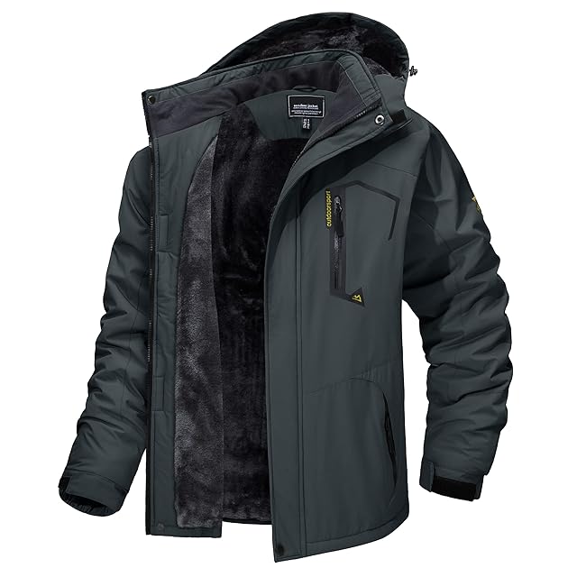 [TACVASEN] マウンテンパーカー スキー メンズ フリースジャケット ハイキングウエア 防寒 裏起毛 フード 無地 通勤 通学 チャコールグレー L