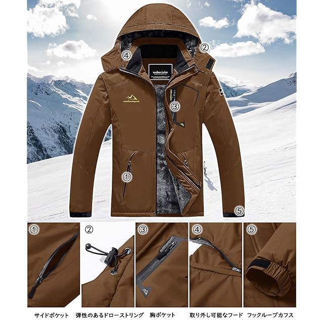 商品名:[TACVASEN] 登山ウエア メンズ 裏ボア ジャンパー カジュアル 防風 マウンテンパーカー 防水 大きいサイズ 登山服 ハイキング 帽子付 コーヒー XL