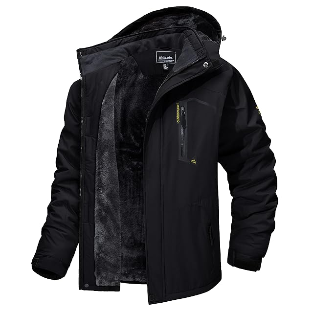 [TACVASEN] アウトドア コート ウンテンジャケット アノラック 防寒 アウターウエア スキーウェア 撥水加工 保温 バイク 秋冬用 ブラック 2XL
