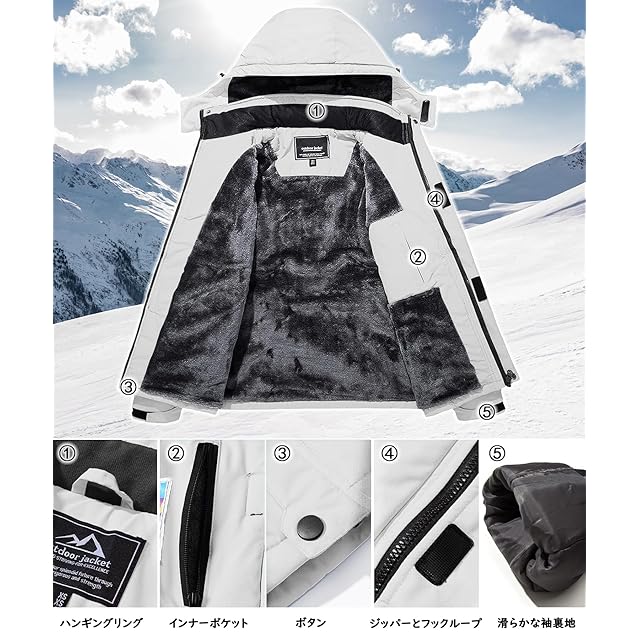商品名:[TACVASEN] アノラック メンズ 防寒 マウンテンジャケット バイク コート 釣り 保温ウエア 裏起毛登山服 フリース バイク フード付 ホワイト 3XL
