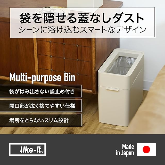 ライクイット (like-it) インテリアに馴染むおしゃれ角型ゴミ箱 フタなしゴミ箱 マルチパーパスビン 約9.5L ダストボックス ピンク 日本製 LBD-51 スリム コンパクト 省スペース 袋が見えない