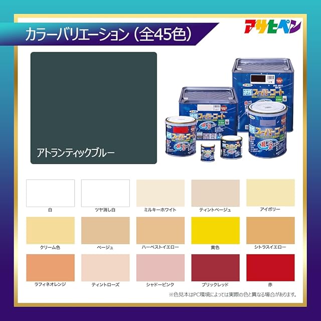 アサヒペン 塗料 ペンキ 水性スーパーコート 1.6L アトランティックブルー 水性 多用途 ツヤあり 1回塗り 超耐久 ロングライフペイント 特殊フッ素樹脂配合 サビドメ剤配合 紫外線劣化防止剤配合 シックハウス対策品 日本製