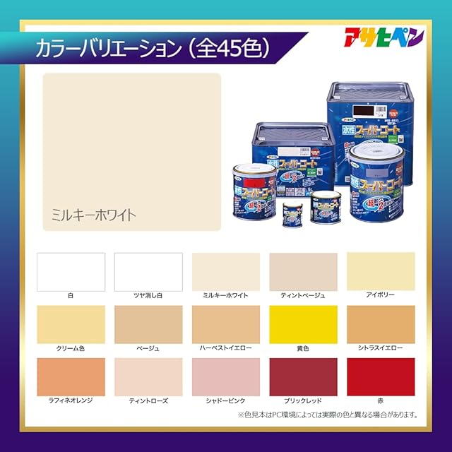 アサヒペン 水性スーパーコート 1/5L ミルキーホワイト 塗料 ペンキ シリコンアクリル塗料 ツヤあり 1回塗り 超耐久 多用途 さび止め剤配合 防カビ剤配合 紫外線劣化防止剤配合 シックハウス対策品 日本製