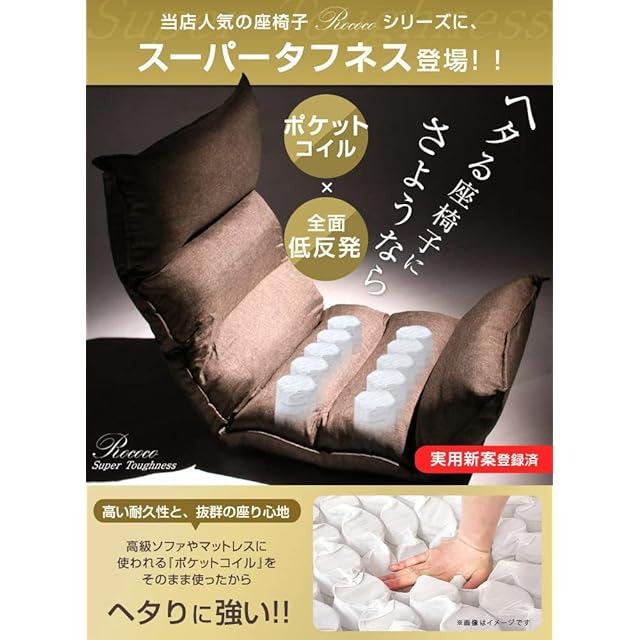 商品名:タンスのゲン 座椅子 へたりにくい ポケットコイル 低反発 14段階 リクライニング ブラウン 43000000 94 (77172)