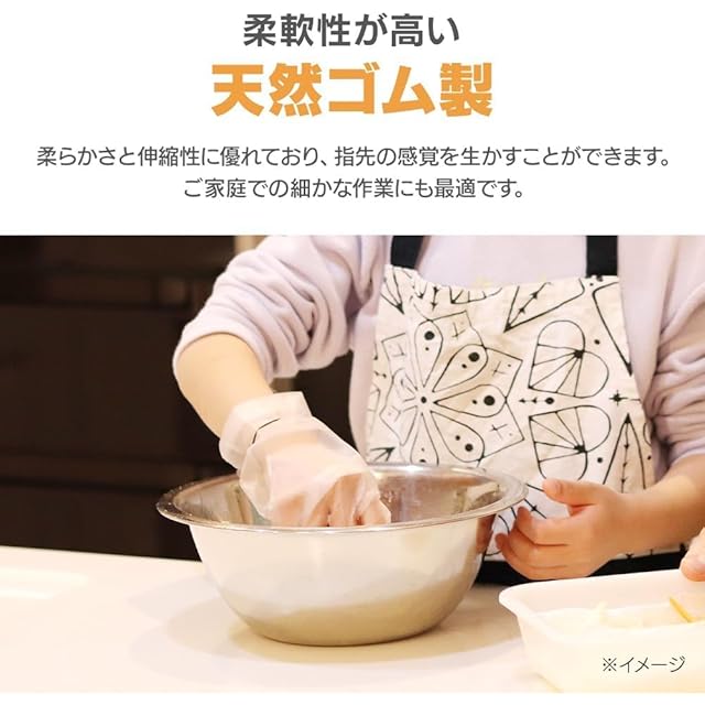 伸縮性があり、やわらかく手に馴染む天然ゴム製の為、やわらかく手に馴染み、指先の感覚を活かせます。また、伸縮性に優れているため、薄く手にフィットします。