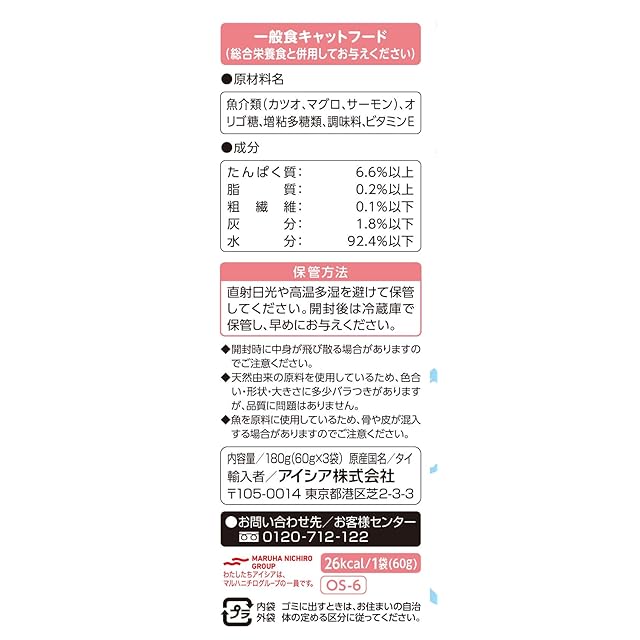 商品名:おさかな生活 アイシア サーモン入りまぐろ 180g(60g×3袋) 6個入り