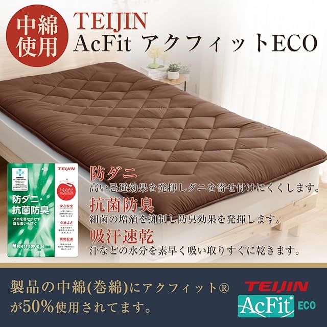 【マイクロファイバー中綿】中綿にはふわふわ極細ポリエステル繊維を使用しているため従来の中綿製品に比べ、柔らかくて軽くふわっと仕上がっています。中綿は防ダニ・抗菌・防臭効果のある帝人の「マイティトップ」を使用します。「マイティトップ」の抗菌防臭効果で汗の臭いや細菌の繁殖を抑える、清潔感を保ちます。