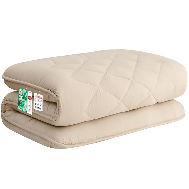 商品名:敷き布団 極厚10cm 五層構造 ダブル 【TEIJIN マイティトップ中綿使用】抗菌・防臭・防カビ・防ダニ・吸汗・速乾 しきふとん ウレタン入り 高級 折り目なし 敷布団 しっかり支える 三つ折り 体圧分散 ホコリが出にくい ピーチスキン加工 やわらかな肌触り [圧縮なしタイプ 極厚] 140×210cm,ベージュ