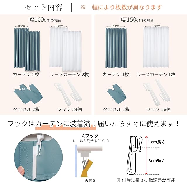 AIFY カーテン 4枚セット 1級 遮光 小窓 ドレープカーテン UVカット 形態記憶加工済み 断熱 節電対策 昼夜目隠し 保温 おしゃれ 洗える 洗濯機対応 (カーテン2枚 レース2枚) 幅150cm x 丈135 cm ストーンシアン