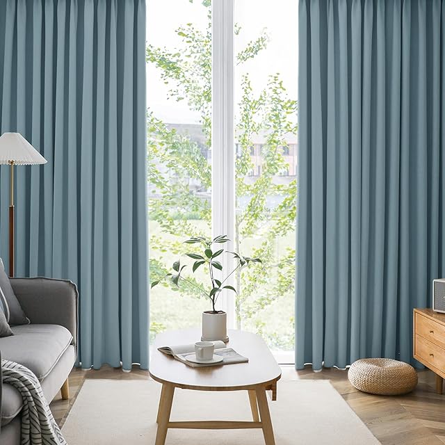 AIFY カーテン 2枚セット 1級 遮光 小窓 ドレープカーテン UVカット 形態記憶加工済み 断熱 節電対策 昼夜目隠し 保温 おしゃれ 洗える 洗濯機対応 (カーテン2枚) 幅100cm×丈190cm ストーンシアン