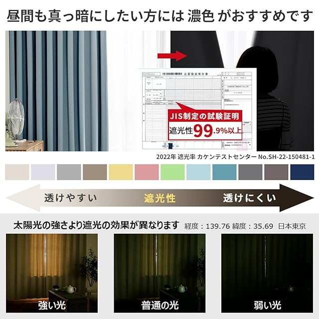 【プライバシーを守る】室内の光を外に漏れにくくする効果があるだけではなく、夜に部屋の明かりを付けている時でも外から人影が見えづらく、プライバシーを守ることができます。女性の一人暮らしでもこのカーテンなら安 心できる