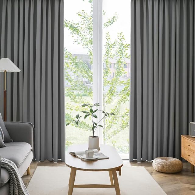 AIFY カーテン 2枚セット 1級 遮光 小窓 ドレープカーテン UVカット 形態記憶加工済み 断熱 節電対策 昼夜目隠し 保温 おしゃれ 洗える 洗濯機対応 (カーテン2枚) 幅100cm×丈150cm スモークグレー