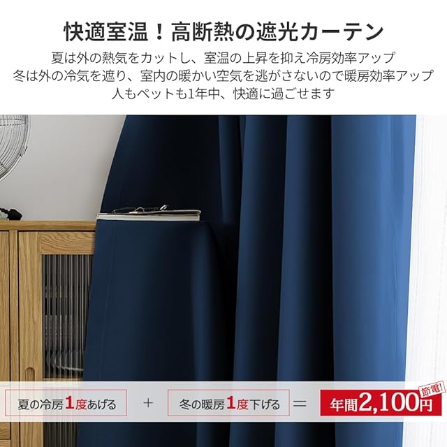 【遮熱保温·形状記憶】届いてすぐ使えるドレープカーテン2枚、同色タッセル付きます。夏は外の熱気をカットし、室温の上昇を抑え冷房効率アップします。冬は外の冷気を遮り、室内の暖かい空気を逃がさないので暖房効率もアップします。ペットにも1年中快適に過ごせます。洗濯機でまるごと洗えます。お手入れしやすいのでいつも清潔に使用できます。カーテンの重みで洗濯ジワも伸ばすことができので、形態安定としてはとても効果が期待できます。