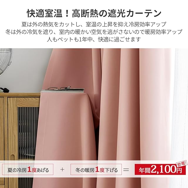 商品名:AIFY カーテン 2枚セット 1級 遮光 小窓 ドレープカーテン UVカット 形態記憶加工済み 断熱 節電対策 昼夜目隠し 保温 おしゃれ 洗える 洗濯機対応 (カーテン2枚) 幅100cm×丈110cm ピンク