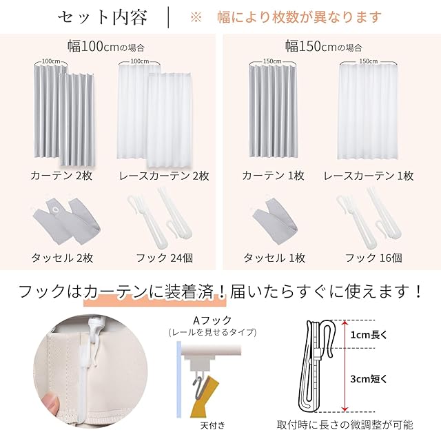 【1級遮光】迷ったらこれ!シンプル&機能性重視の方におすすめです。この4枚セット(1級遮光ドレープカーテン2枚、レースカーテン2枚)を選択する理由:①光沢を抑えたマットな質感が美しい。②黒ずみの少ないなめらかな生地。③快適に過ごせる優れた性能。遮光率99.9%以上、日差しの強い窓でもしっかりと遮光できるので、光をできる限りシャットアウトしたい方におすすめです。