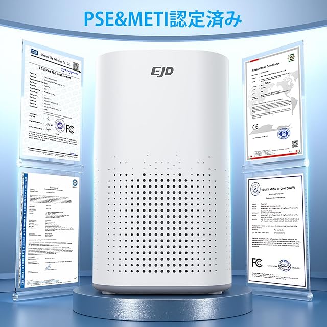 【革新版5層ろ過を実現!ニオイ対策・最強モデル新登場!】①空気清浄機 小型が業界初革新版H14 HEPAフィルターを採用し、集じん・除菌・脱臭・花粉対策の効果を著しくアップさせます。粒子イオン化技術と独自開発5層ろ過構造の組み合わせることで、CADR 250m³/hの高い浄化能力を誇り、圧倒的な清浄力をみせる!②極細の高密度プレフィルターでペットの毛やフケなどの大きな浮遊物をキャッチ効果2倍アップ!フィルターの寿命を向上。③特化型脱臭高吸着性活性炭フィルターは従来品より10倍の炭素量で消臭効果を60%高め、ペットの臭、料理臭、靴の臭、部屋干し衣類の生乾き臭など、日常生活に気になるニオイをしっかり取り除く。④新しい光触媒フィルターで消臭力が従来品より3倍早いスピードで異臭、有害ガスなどを分解でき!⑤ハイグレード抗菌フィルターで空気中の菌・浮遊ウイルスを不活性化し、除菌率99.99%!ご家族全員の健康を守ります。6畳-38畳対応の空気清浄機 小型の中に最強なモデルなので、ぜひEJD空気清浄機を試してみてください。